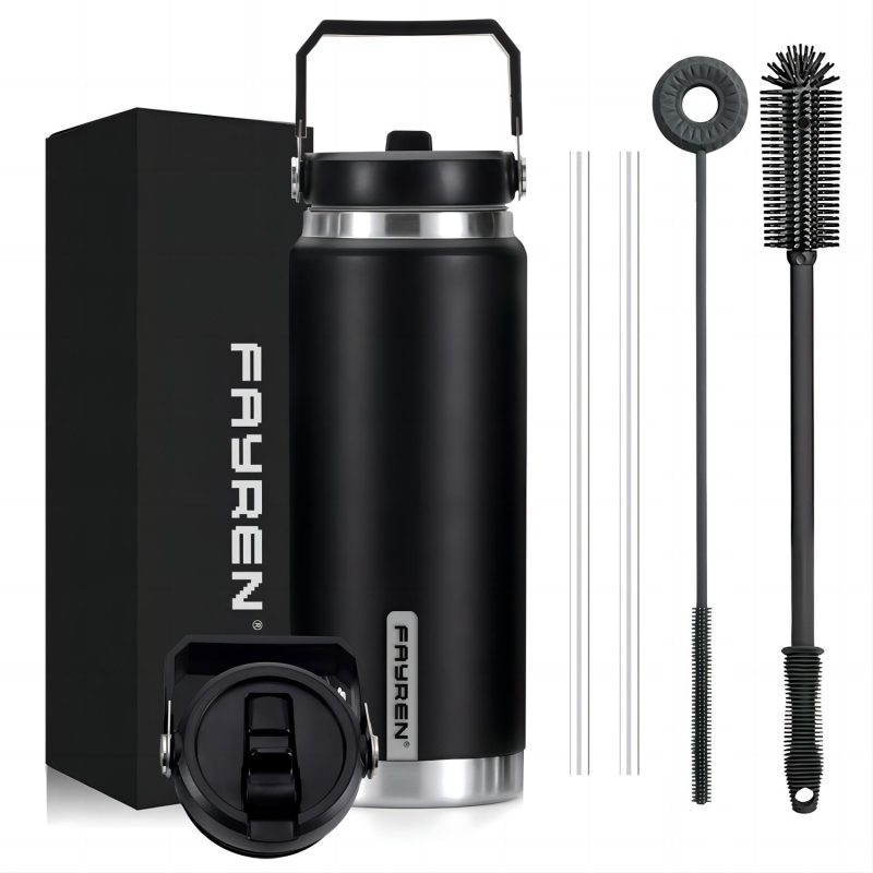1.[Stainless Steel and PP Material]: Fayren water bottle is made of premium stainless steel and PP, no smell transfer and no rusting, fall and .